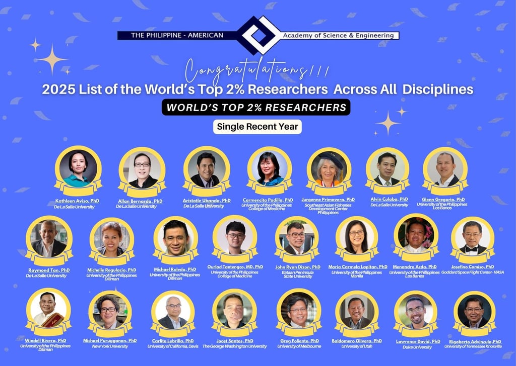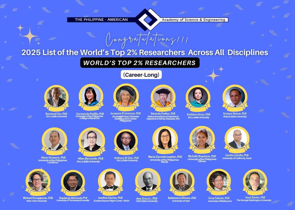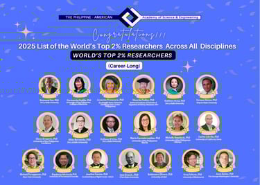 The Philippine-American Academy of Science & Engineering (PAASE) proudly congratulates our distinguished members who have been recognized in the 2025 World’s Top 2% Scientists Rankings by Elsevier and Stanford University.