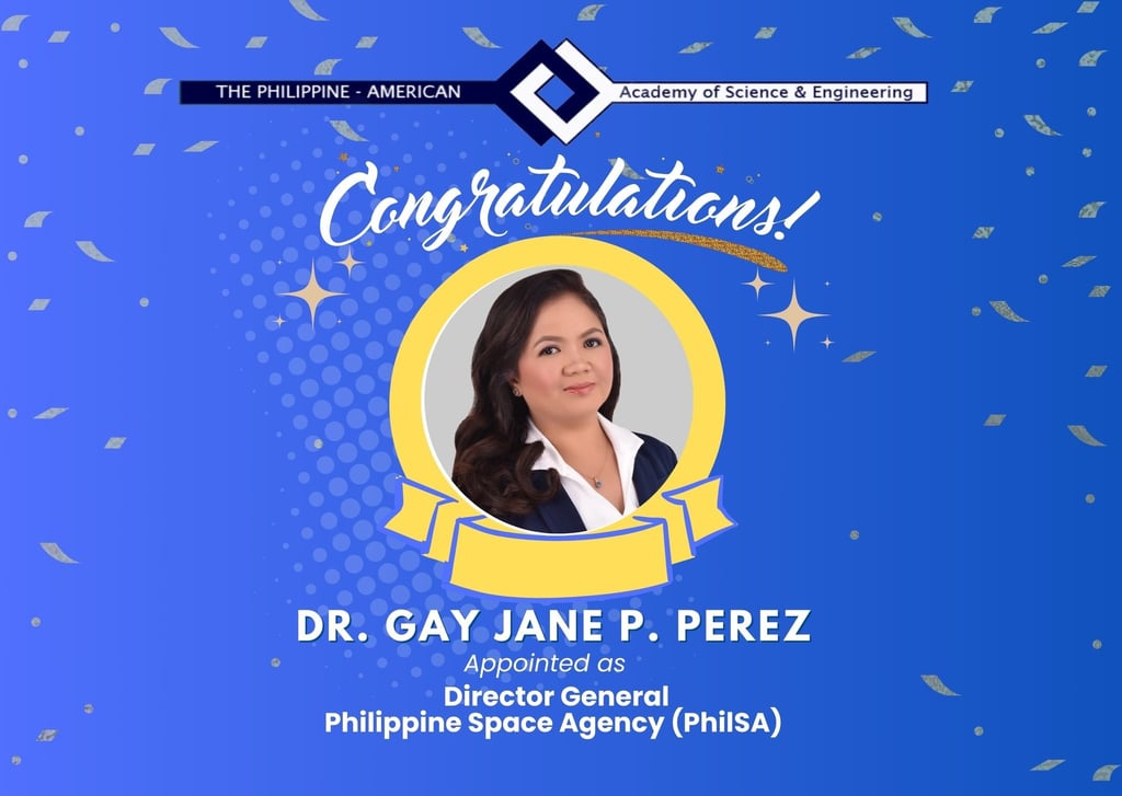 The Philippine-American Academy of Science & Engineering (PAASE) proudly congratulates Dr. Gay Jane P. Perez on her appointment as Director General of the Philippine Space Agency (PhilSA).