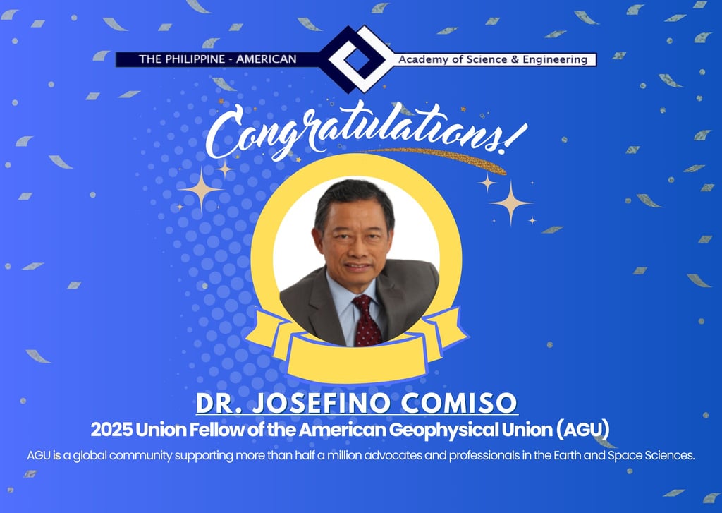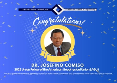 The Philippine-American Academy of Science & Engineering (PAASE) proudly celebrates your outstanding achievement as the 2025 Union Fellow of the American Geophysical Union (AGU). As the world’s largest Earth and space science association, AGU serves a global community of over half a million researchers, policymakers, and science advocates.