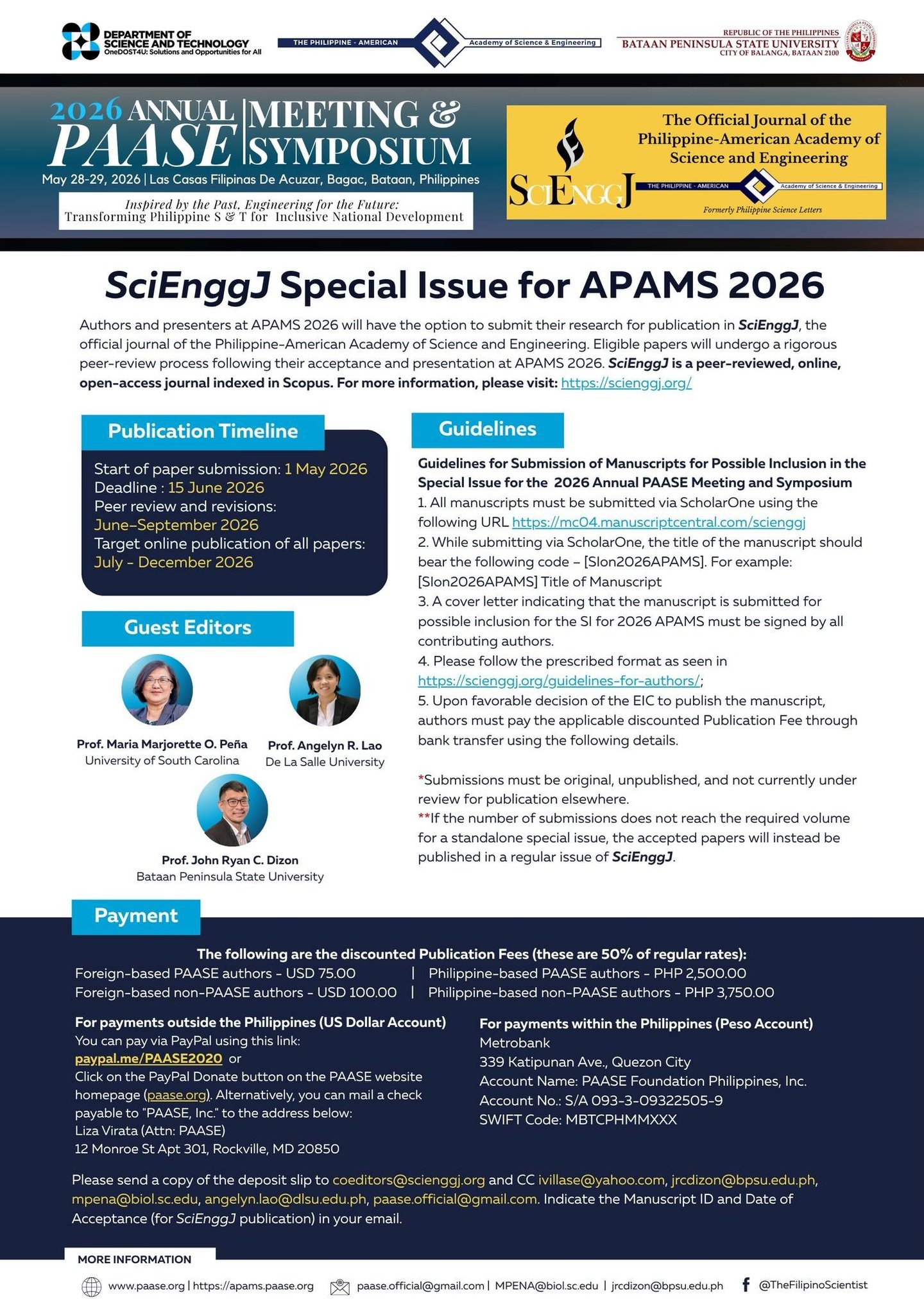 Publish your research in SciEnggJ. Submit to the APAMS 2026 Special Issue and be part of advancing science and engineering for the future.