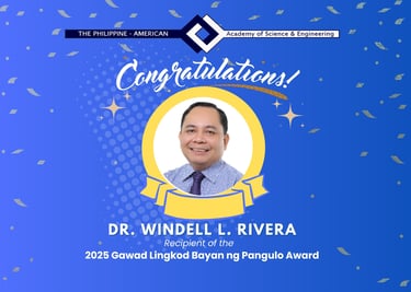 The Philippine-American Academy of Science & Engineering (PAASE) proudly congratulates Dr. Windell L. Rivera, Recipient of the 2025 Gawad Lingkod Bayan ng Pangulo Award.
