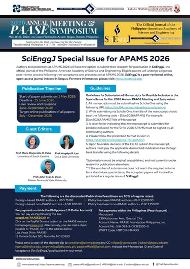 Calling all researchers, scientists, and innovators! Abstract (Oral and Poster) submission is now open for the 2026 Annual PAASE Meeting and Symposium (APAMS 2026), happening on May 28–29, 2026 at Las Casas Filipinas de Acuzar, Bagac, Bataan.
