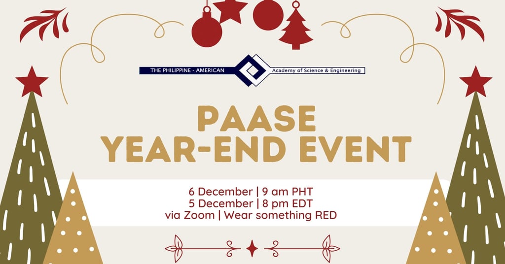 The holiday season is here, and we are excited to invite you to our PAASE Year End Event via Zoom on 6 December 2025 at 9:00 AM PHT | 5 December 2025 at 8:00 PM EDT.