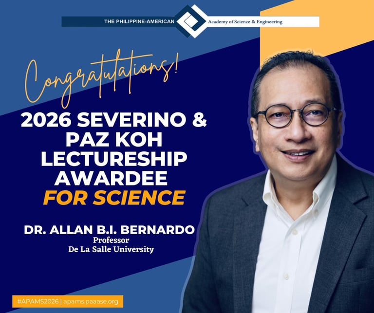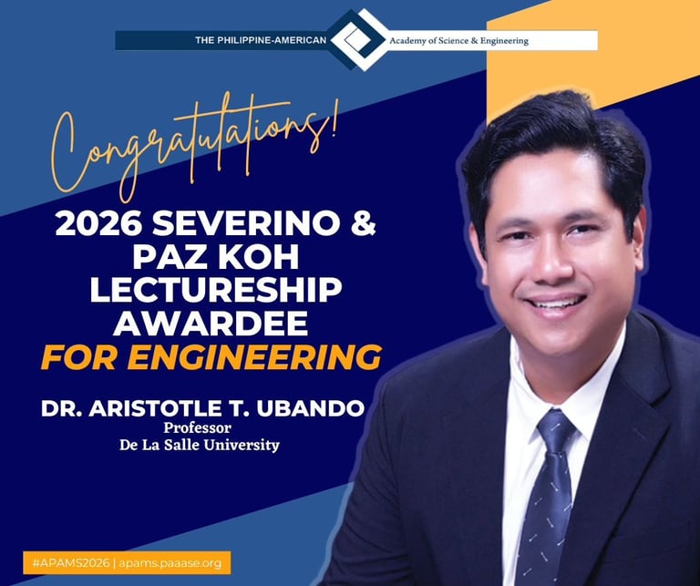 The Philippine-American Academy of Science and Engineering (PAASE) invites nominations for the Severino & Paz Koh Lectureship Awards for Science and Engineering, to be conferred during the 2026 Annual Meeting and Symposium.