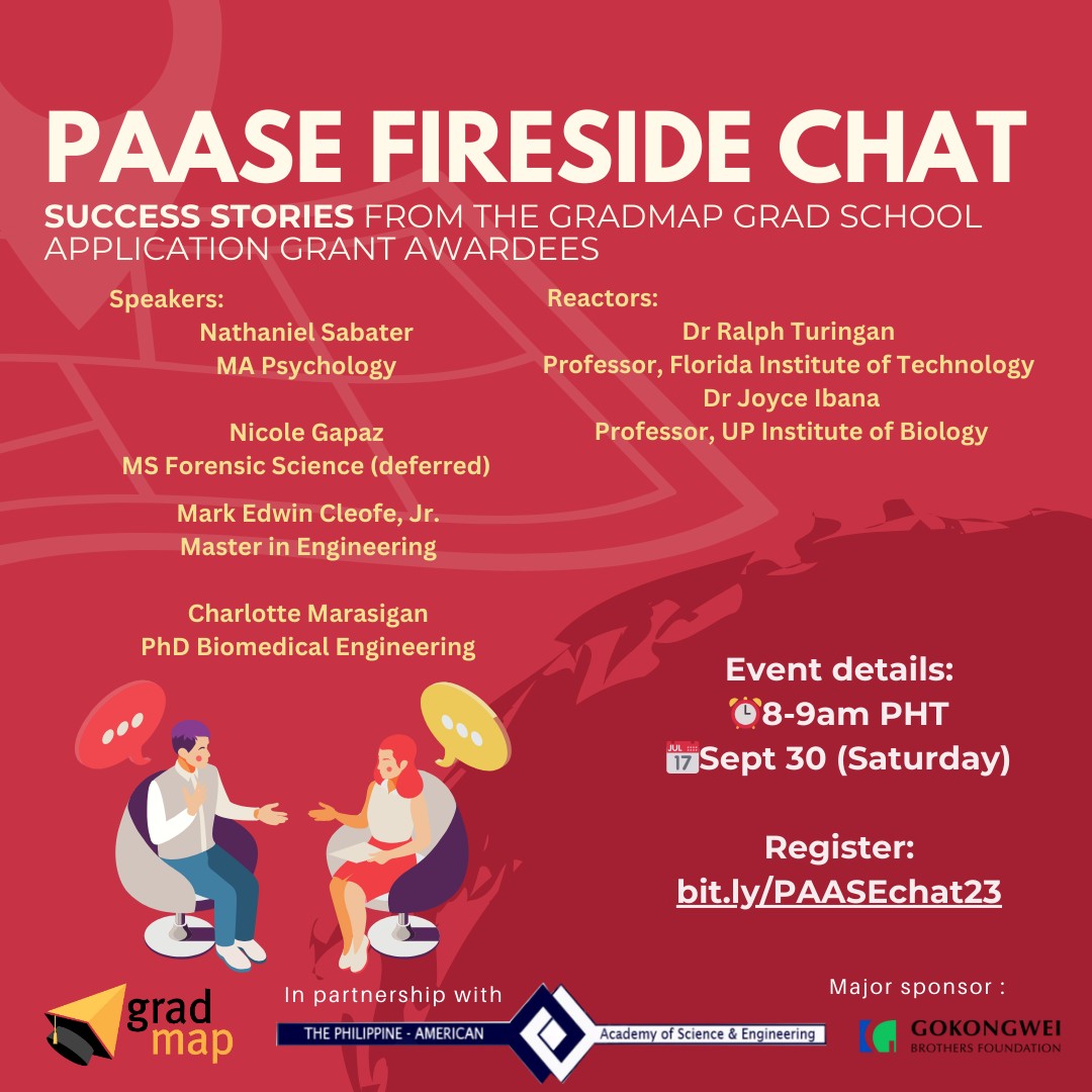 PAASE and GradMAP will also hold a Fireside Chat entitled Success Stories from GradMAP Grad School Application Grant Awardees on the same date. This engaging virtual event will feature the following grantee-speakers: